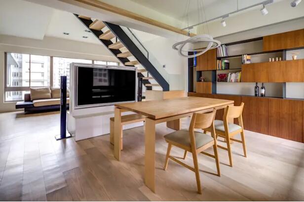 這時(shí)用簡(jiǎn)單的柜子就能區(qū)隔出空間,能保留空間穿透感,也能坐下來好好吃頓飯!
