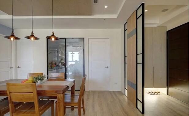 很多屋主不喜歡開門的時候被鄰居看到屋內的樣貌,因此在這個地方設置隔斷屏風便能為家中增添隱私感。圖中的這個隔斷屏風結合了木頭與塑膠的材質,不透明的設計讓家中保有絕佳隱密性。圖中的這個隔斷屏風挖了三個不同大小的圓,巧妙分隔空間的同時卻又有穿透感。