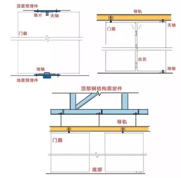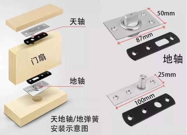 旋轉(zhuǎn)門和旋轉(zhuǎn)隔斷的是通過地彈簧和天地軸來實(shí)現(xiàn)旋轉(zhuǎn)的,我們先來簡(jiǎn)要的看看它們的通用構(gòu)造做法: