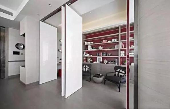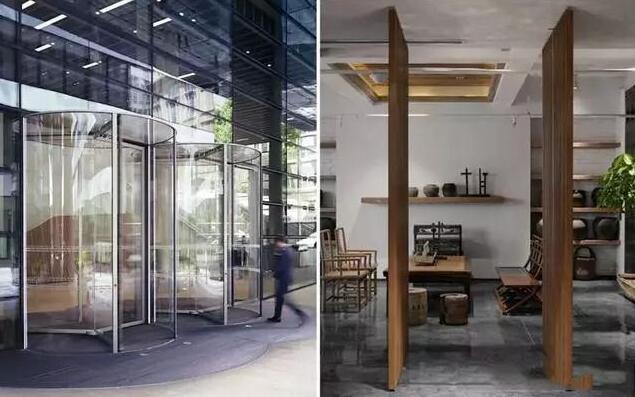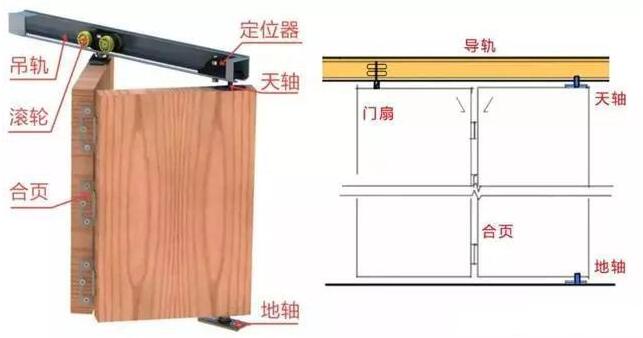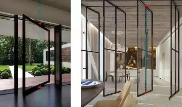 我們看了旋轉(zhuǎn)門所用到的天地軸,活動(dòng)隔斷用到的滑軌和滾輪,那么如果將這兩種五金構(gòu)造加上門扇合頁組合在一起會(huì)是什么效果呢?