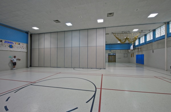 學(xué)校體育館內(nèi)的手動(dòng)和電動(dòng)折疊活動(dòng)隔斷墻