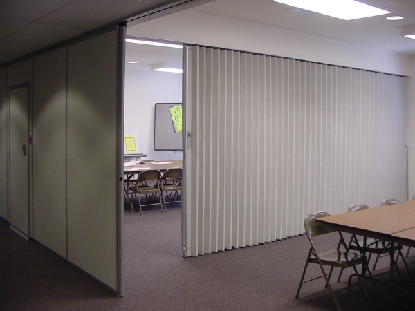 手風(fēng)琴式折疊墻是廉價(jià)的活動(dòng)隔斷墻,可以快速有效地分隔房間。但是,當(dāng)手風(fēng)琴門打開時(shí),墻壁不會(huì)折疊成平的,因此名稱為“手風(fēng)琴”。這些折疊墻無法獲得與平板墻可操作隔斷相同的聲學(xué)性能,但價(jià)格便宜且在快速分隔房間方面有效。