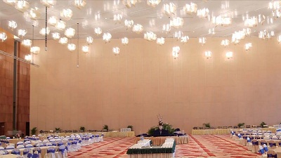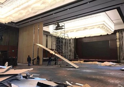 特高類型(標高9m-18m)即可稱為超高型隔斷,是眾多高星級酒店常用的活動隔墻系統(tǒng),特高隔斷可以起到有效分割宴會廳,會議中心的空間,做到一廳多用,且互不干擾的用途。