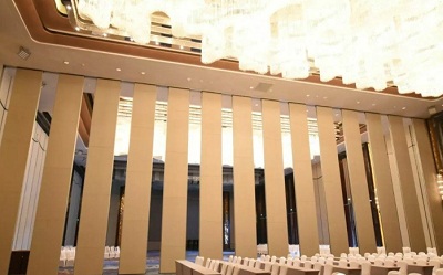 在木活動隔斷上面做飾面的目的是讓活動隔斷與整個建筑室內(nèi)設(shè)計的環(huán)境融為一體,在關(guān)閉的狀態(tài)下的話,使整個活動隔斷感覺不出來是活動隔斷而是一片墻。酒店的宴會廳和公用的比較大的會議室通常采用這種形式。