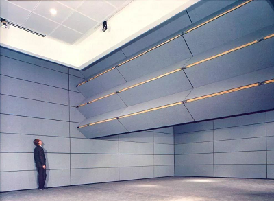 這種隔斷多用于上部可隱蔽的展覽廳、觀眾廳和多功能大廳等建筑中,也可用于錄音廳以調(diào)節(jié)音量,還可用于劇院舞臺(tái)臺(tái)口作為防火幕。